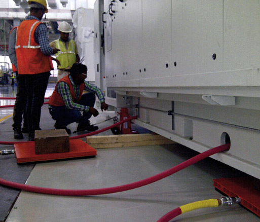 Die Load Module™ Systeme benutzen die Effizienz der Flüssigfilmtechnologie, um schwere Lasten auf einem fast reibungslosen Luftfilm schwebend zu transportieren.
