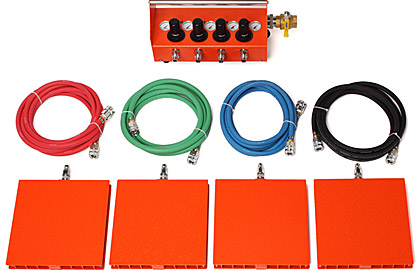 aus Luftkissenmodulen, farbigen Verbindungsschläuchen sowie einer kompakten und leicht zu handhabenden Druckregelbox.